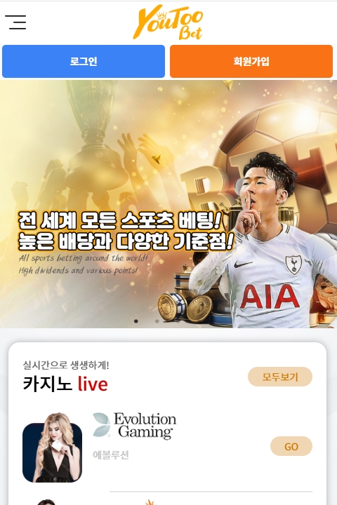 회원 여러분은 유투벳이 제공하는 축구, 야구, 농구, 배구, 아이스 하키, E-스포츠 등 기타 다양한 스포츠 종목에 베팅할 수 있습니다. 국내형 스포츠와 해외형 스포츠 중에 선택하시면 크로스 베팅과 스페셜 베팅 등의 다양한 베팅 옵션과 높은 배당률을 경험하실 수 있습니다.